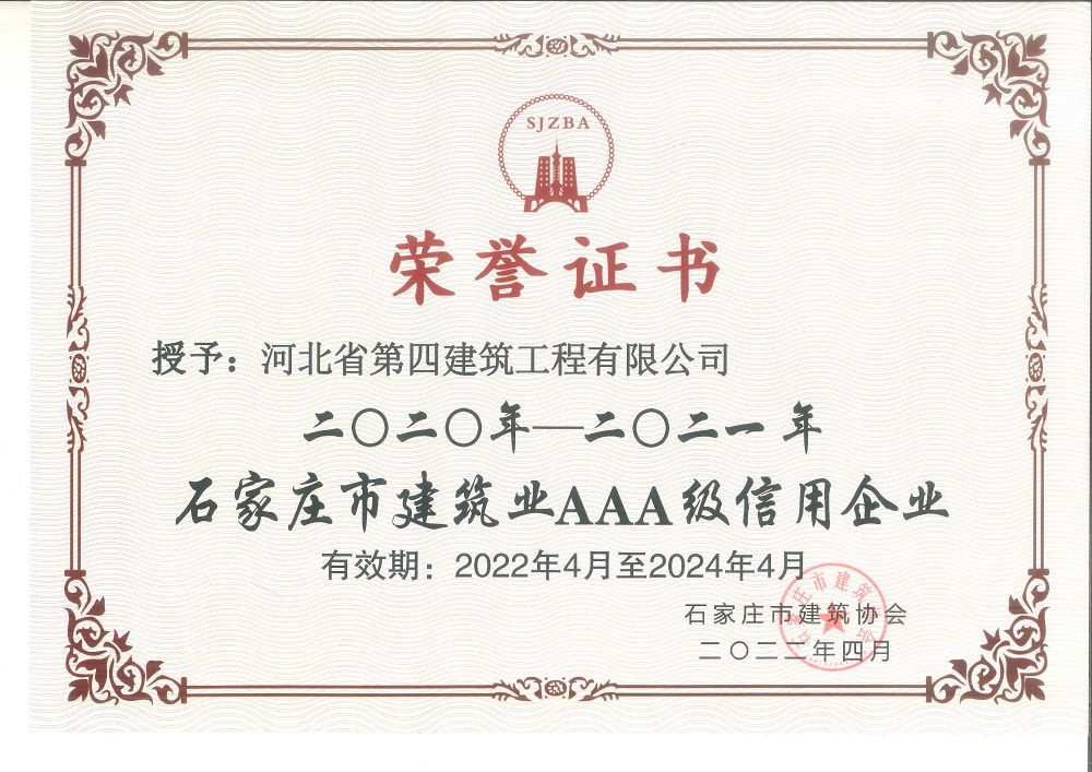 2020-2021年度石家庄市建筑业AAA信用企业